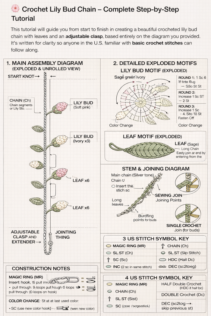 American Lily Bud Bracelet – Step-by-Step Crochet Guide