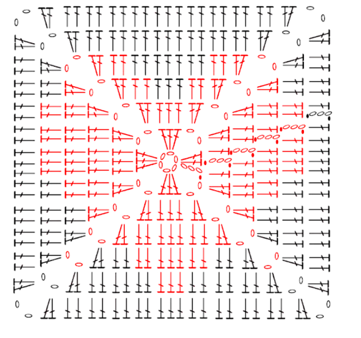 Crochet Heart Granny Square Diagram: