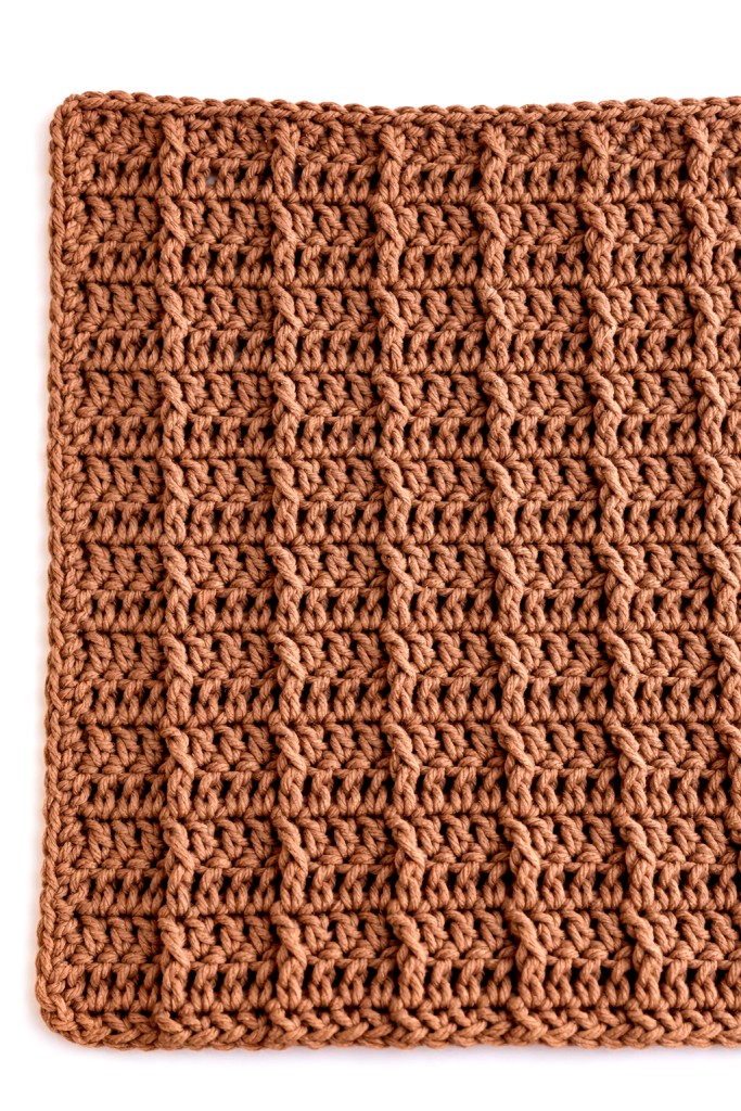 Using cotton yarn helps define the post stitches beautifully, making the raised texture stand out even more. The finished fabric will feel slightly thicker and more structured than standard double crochet fabric.